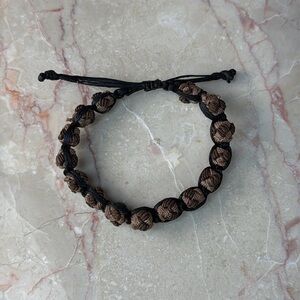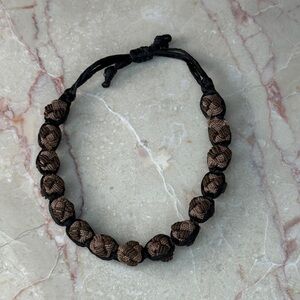 Stylish bracelet with brown knots and black cord. Perfect for casual wear. Gently used 2