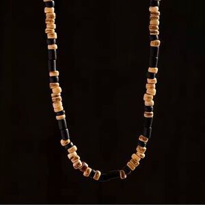 Brown and Black Small Beaded Chain Necklace Men Trendy Wood Beads
