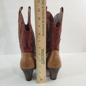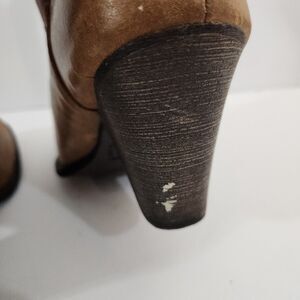 Step out in style with these chic brown and burgundy heeled boots. Perfect for adding a touch of elegance to any outfit.