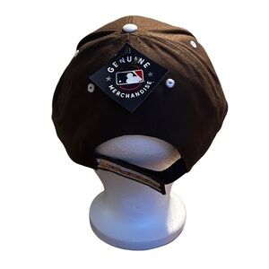 This stylish brown hat features a striking gold interlocking 'SD' logo, embodying the classic San Diego Padres branding. The cap is designed for comfort and style, making it a perfect accessory for any casual outing or game day. Its fitted design ensures a snug and secure fit.