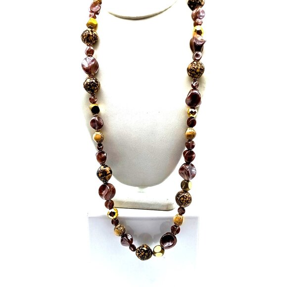 Brown and Gold Tones Necklace, Vintage Lucite Beaded Strand Some with a Stone Look