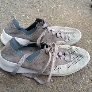 the shoes are in pre-owned used condition and have staining on the toes. they also may contain wear and tear all over
