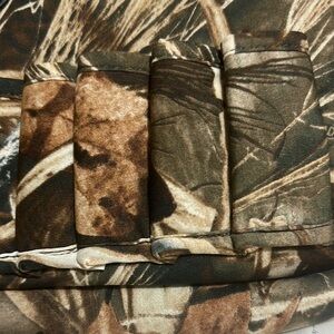 These gloves feature a striking camouflage pattern in earthy tones of brown and green, perfect for blending into natural surroundings. Designed for durability, they are ideal for outdoor activities, providing both style and functionality. The gloves are crafted to withstand rugged use, making them a reliable accessory for any adventure.