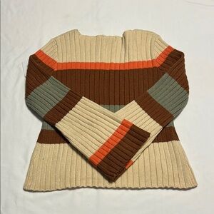 Brown and Orange Crew Neck Sweater with Earthy Tones