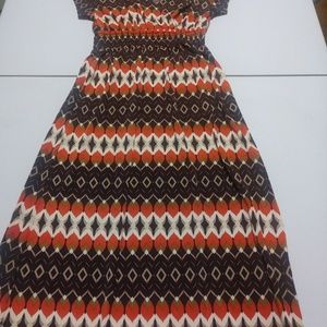 Brown, orange, tan maxi dress, empire waist, 5th & Love, 95% Polyester and 5% Spandex