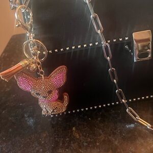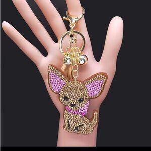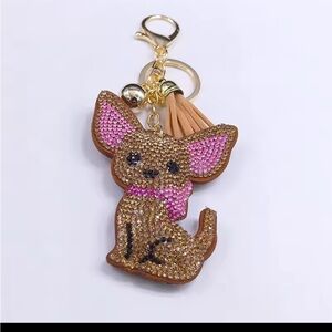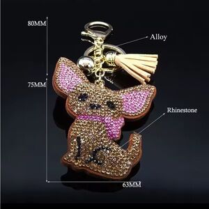 Add a touch of sparkle to your accessories with this charming brown and pink rhinestone dog key holder. Perfect for keeping your keys stylishly organized.