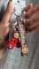 Adorable brown and red keychain for kids. Perfect for adding a playful touch to backpacks or keys.