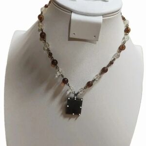 This elegant necklace features a stunning combination of brown and clear tones with a square pendant, perfect for adding a touch of sophistication to any outfit.