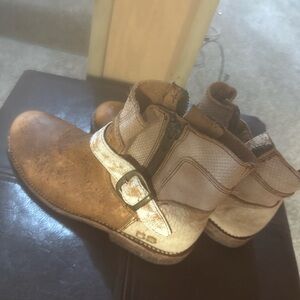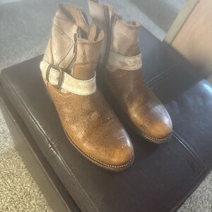 Brown and Tan Ankle Boots with Buckle
