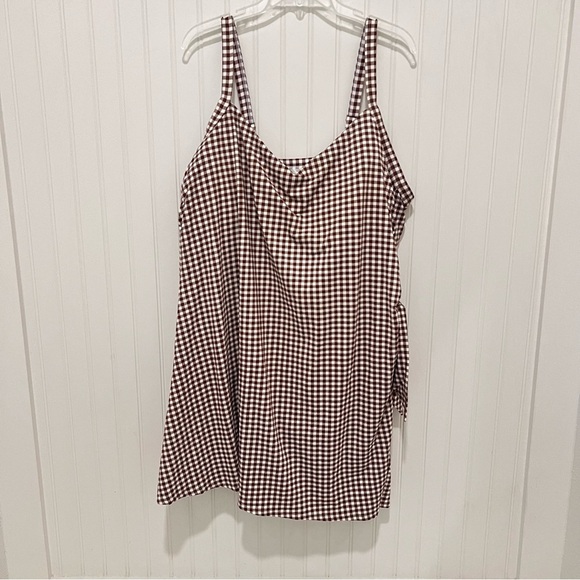 Brown and White Checkered Gingham Swimsuit Dress Lands End