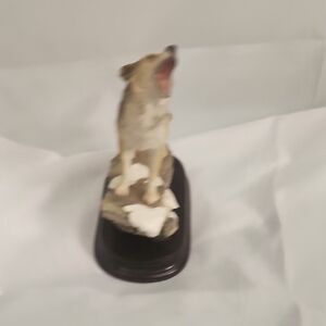 This charming dog figurine showcases a Collie with a striking brown and white coat. Its attentive posture and fluffy tail wrapped around its body capture the breed's elegance and alertness. Perfect for dog enthusiasts, this piece highlights the Collie's distinctive features.