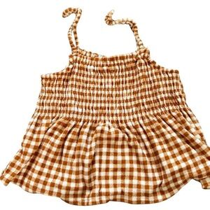 Brown and White Gingham Smocked Top