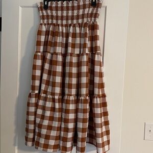 Chic gingham tiered skirt in brown and white. Perfect for casual outings. Perfect with Jean jacket.