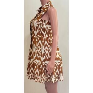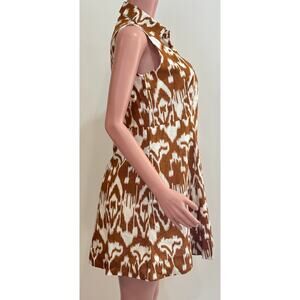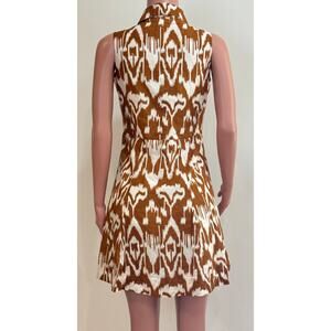 Chic and stylish brown and white mini dress perfect for any occasion. Features a unique pattern that stands out.