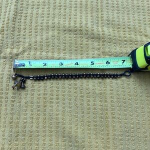 Brown and bronze colored beaded dolphin bracelet. Great condition. New. Never worn. No tags. Bag included. The beads have lighter browns mixed in. The bells on the dolphin end jingle. See size in pics. For a smaller wrist. Super cute on!