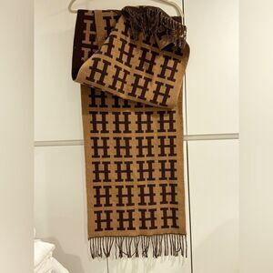 Brown and camel midweight wool reversible logo scarf with fringe NWOT