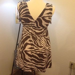 Gorgeous brown and cream sleeveless low neck top. With bead accents on front. Has tie on shoulders, which you can tie up or let hang. Has elastic around bust. Also v neck on the back of top. This top is gorgeous with leggings or jeans!! ๐ top is about 29" long and about 20.5" from armpit to armpit!