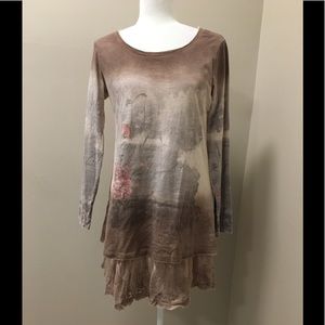 Long sleeve printed tunic dress/shirt with tulle and lace lining.