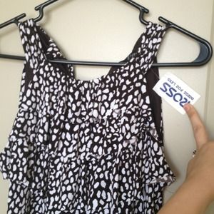 Brown and white patterned dress.