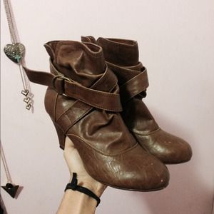 Cute trendy brown ankle boots! Pairs well with any jean or dress! Worn a few times! Great condition
