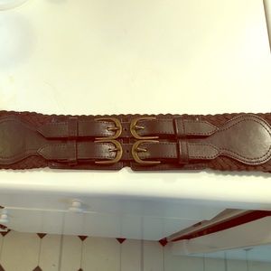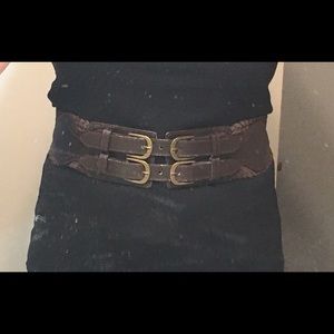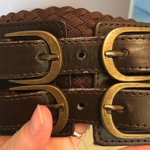 Double buckle belt. Very cute! Been worn a few times. Signs of wear around material where you buckle. But other than like new!