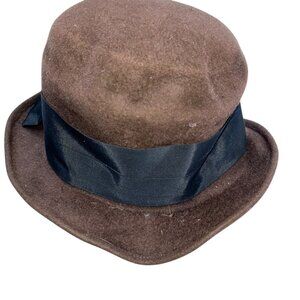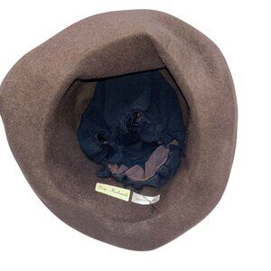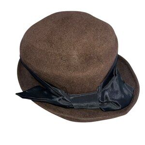 Brown black felt ribbon bow hat London Susy Krakowski Vintage England