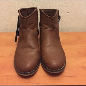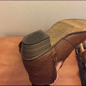 Brown booties with small chunky heel. Outside zipper detail and side zipper for easy wear (: barely worn!