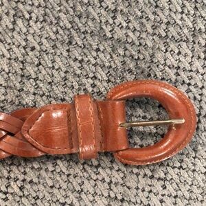 Like new brown braided belt. Self covered buckle. 35” from tip of buckle to end of belt.