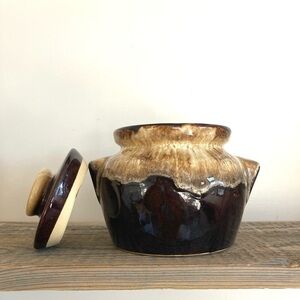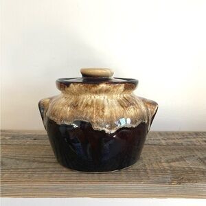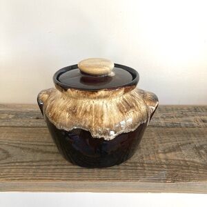 Brown Sri bean pot in perfect vintage condition! There are no markings on this piece so I can’t say with certainty what company made it. Definitely looks like Roseville or Hull but neither are marked. So many uses for storage and decor!