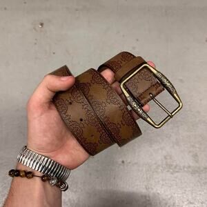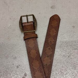 brown engraved pattern western style belt vintage 2000s 90s 80s 70s y2k vegan leather
