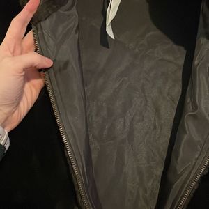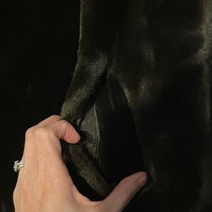 Brown faux fur vest with a inner layer. Zippered front and hidden pockets. Unsure of brand. No tags. 20 1/2” pit to pit. 23 1/2” shoulder to hem.