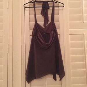 Brown halter top with ruffles from Guess. 100% Nylon. Stretchy and comfortable.
