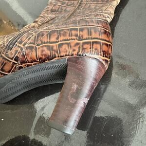 brown heeled crocodile boots