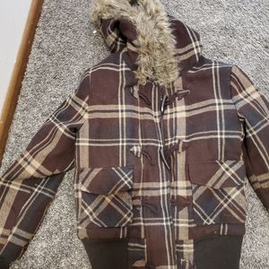 Brown flannel button up zip up jacket