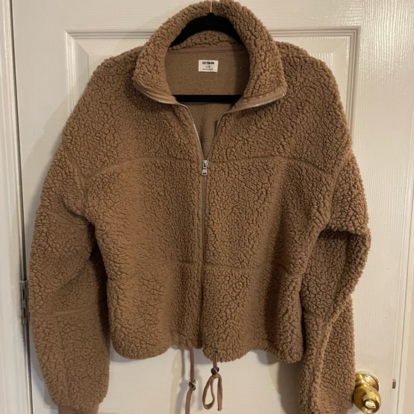 Brown jacket size Large zipper front Cotton on brand very soft