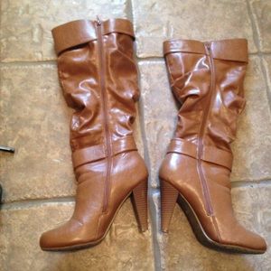 Beautiful brown zip up boots. They come right below the knee cap and look fabulous with skinny jeans and leggings!