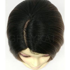 Simple yet sexy short bob style wig featuring a fixed lace side part. Inside cap has combs for a secure fit and adjustable elastic straps. Made with heat resistant fibers (350-400 degrees).