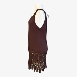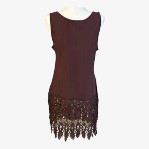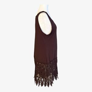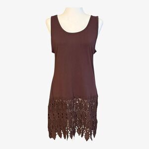 Brown lace trim long tank top. Perfect for wear over jeans of you like the dress over denim style.