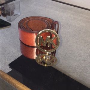 Beautiful brown leather MK belt. This piece pairs great with any pair of jeans!
