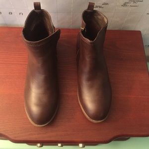 Brown leather ankle booties