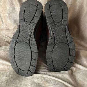 brown leather, ankle boots, rubber sole, side zipper, traction, casual footwear, durable, hiking style, stylish, near new