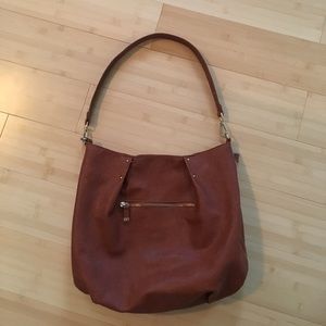 Brown leather bag with gold details in good condition .. only flaw is black stain on bottom (in picture) 👜