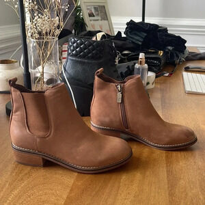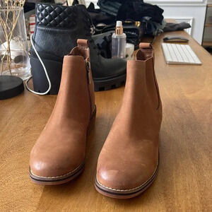 Brand new boots. Brown leather waterproof boot. Upper leather. Synthetic lining. Rubber sole.