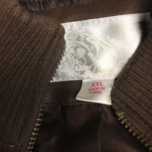Super warm brown leather jacket. Really cute just too big for me! Fits like a large.
