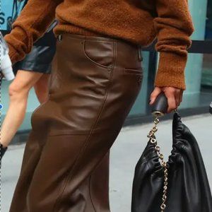 EUC. beautiful chocolate brown leather skirt, size 5/6