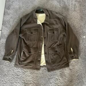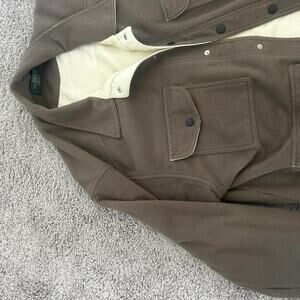 brown, vintage, 90s, bomber style, fleece-lined, rugged, distressed, casual, heritage, outdoors