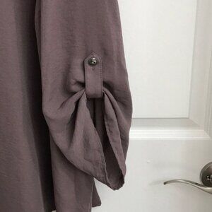 Brown pullover blouse with 3/4 sleeves held up with buttons or wear down. 3X from Maurice’s.