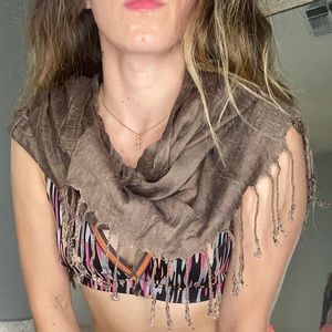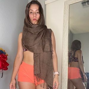 Very cute scarf, thin fabric, I’m not sure what kind of material this it’s the softest!