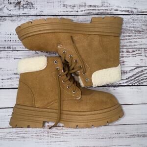 Brown short fuzzy winter boots women’s size 7(38)