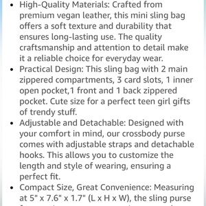 ⭐️ This small crossbody bag features multiple compartments, including a zippered main pocket and interior card slots, allowing you to organize essentials. Also a small back zipper pocket to hide essentials.